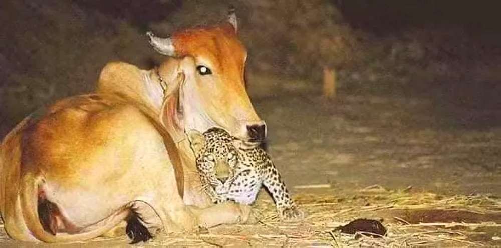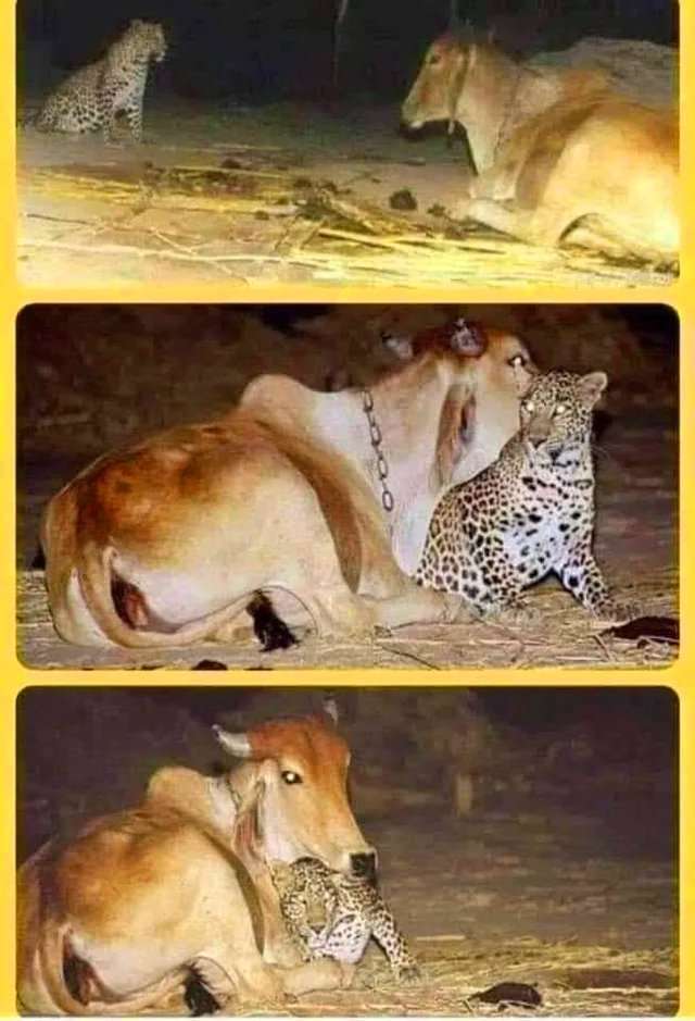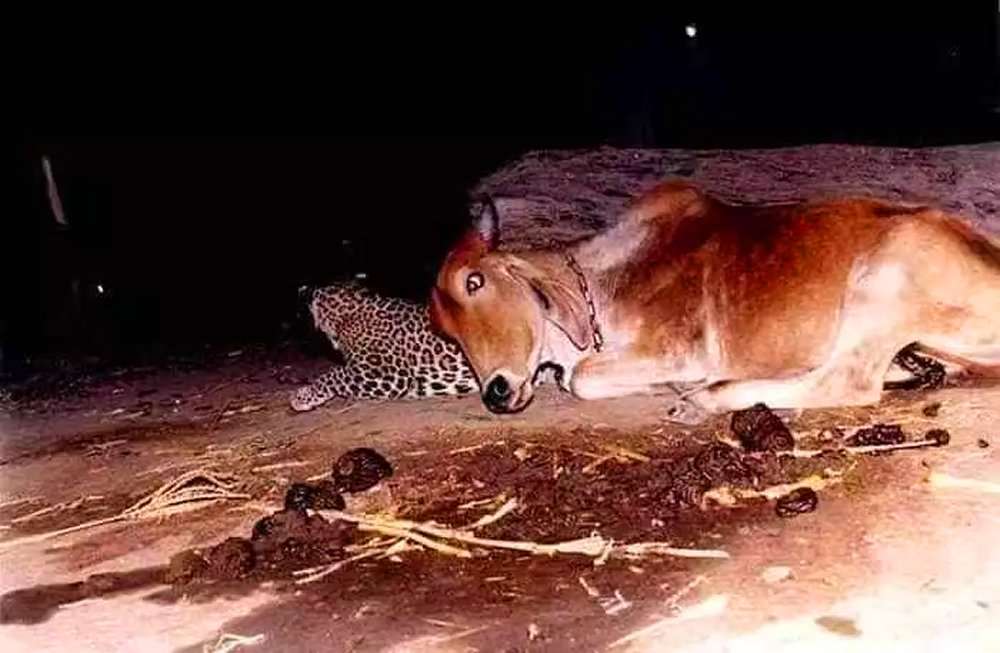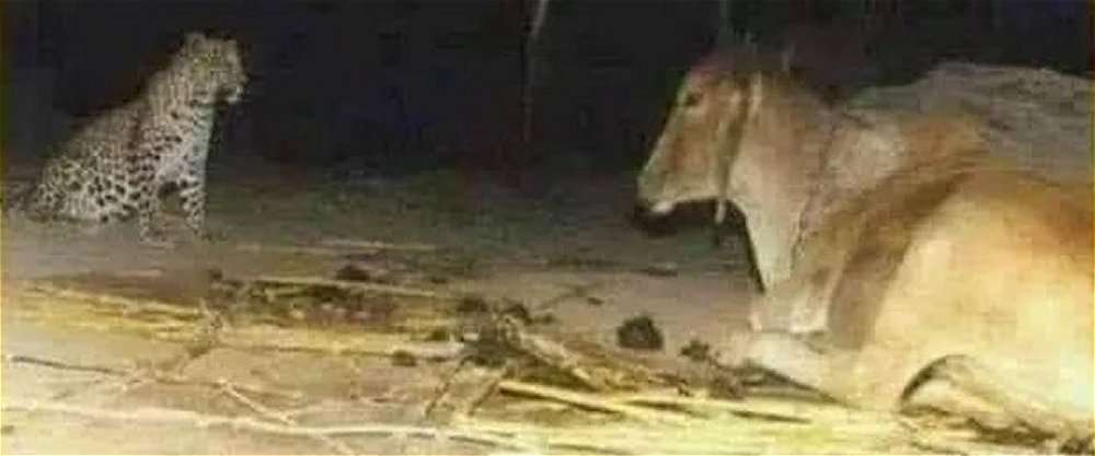 και ότι η αγελάδα είχε ταΐσει τη λεοπάρδαλη